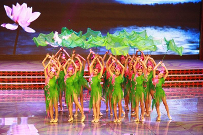 荷花盛开的时节,满是荷叶的池塘一片碧绿,微风吹过,满池的荷叶随风摆动,形成了一副别样而生动的画面。于是就有了这支以荷为名的舞蹈。表演者身着荷叶般的服装,使用特制的荷叶道具,舞台上一举一动都仿佛是满池的荷叶在随风飞舞,欢快但不喧嚣,自由但不随意,完美的重现了满塘荷花的风中舞姿。